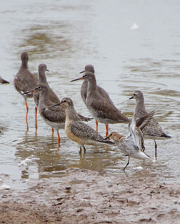 Later in the day I had a look at Bowling Green Marsh where I saw a juvenile Eurasian Spoonbill , 100+ Common Redshank , a Spotted Redshank , 1 Ruff , 20-30 Dunlin , 1 Whimbrel , and a juvenile Mediterranean Gull .